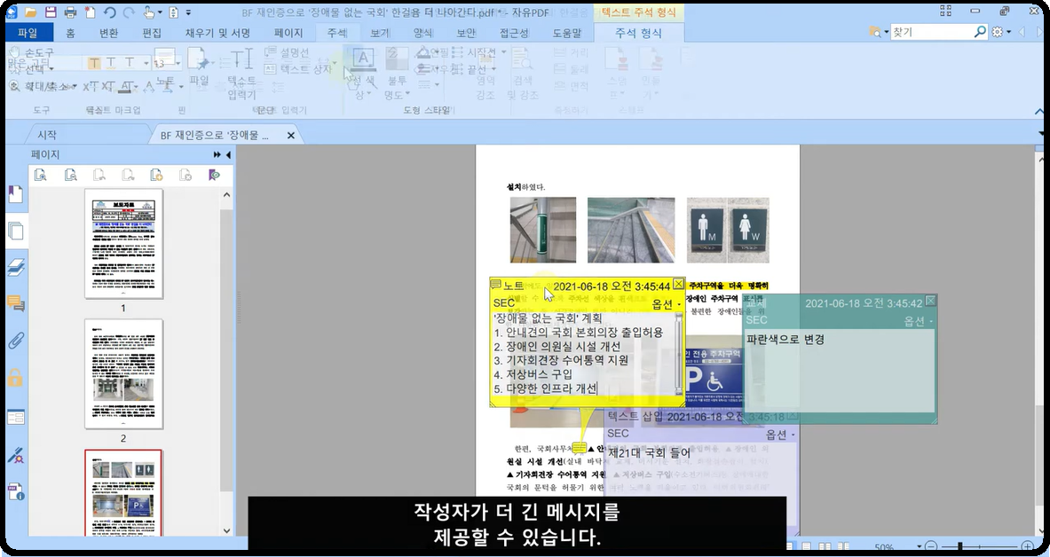 PDF 문서를 검토한 후 주석을 작성하여 동료에게 쉽고 빠르게 전달할 수 있습니다.